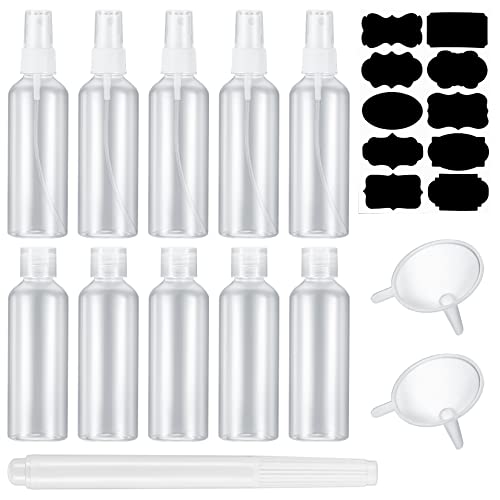 - Package Includes: You will receive 5 x travel pots for toiletries, 5 x empty spray bottle, 2 x funnels, 1 x labels, 1 x pen, also a great choice for travel, camping, business trips, etc.
