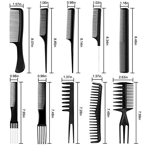 - 【Well Packaged】: Set of 10 pieces of professional hair styling combs, in different types, are well packaged in the clear plastic bags. The package can be folded and you can take them with you easily.