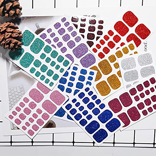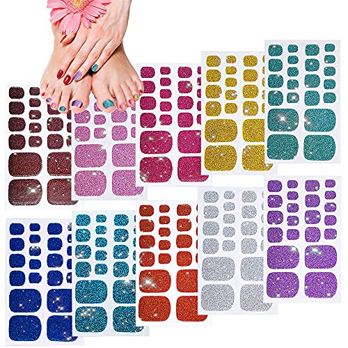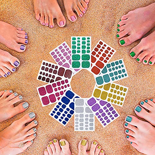 10 Sheets Toe Nail Polish Stickers Glitter Toenail Nail Polish Strips Decals Full Wraps Self Adhesive Toe Nail Tip Full Toe Nail Wraps for Women