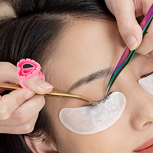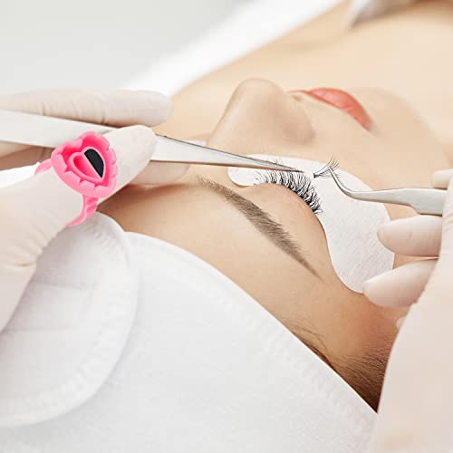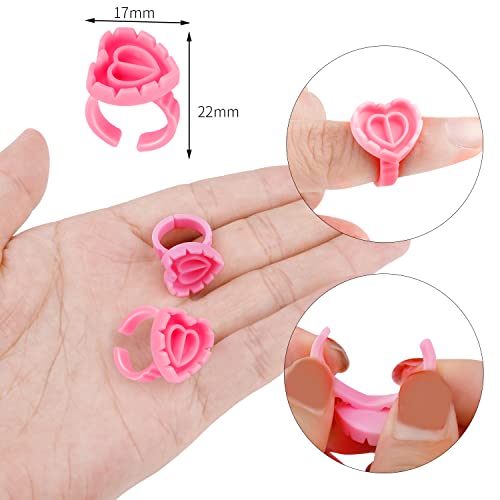 100 Pcs Pink Lash Glue Holder Flower Glue Rings Plastic Makeup Glue Holder Quick Blossom Cups for Eyelash Extension