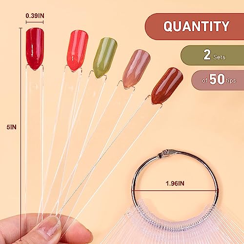 100pcs Fan-shaped Nail Swatches, Nail Color Display Sticks Pop Sticks with Metal Buckle, Clear Nail Art Tips for Nail Gel Polish Displays and Pra
