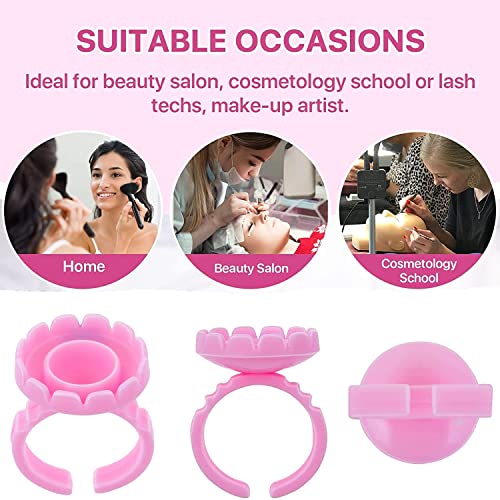 - Package of Glue Rings: There are totally 100 pcs pink flower lash glue rings, enough quantity for you to use for a long time. And each one is 2.5x1.8cm/0.98x0.70 inch which are very suitable for eyelashes with more glue added during the filling process, making your makeup operation more convenient.