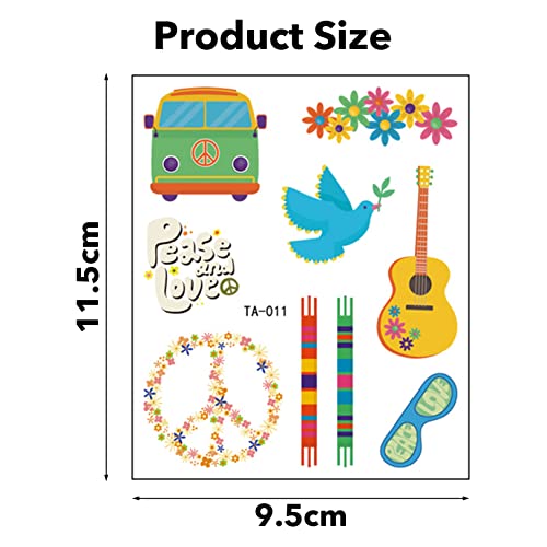 - 【Hippie tattoos】You will receive 10 pieces of hippie tattoos in various styles, the size is 11.5*9.6cm/4.5*3.8inch, with exquisite workmanship, bright colors, clear patterns, unique designs and enough quantity to satisfy Your party decoration needs.