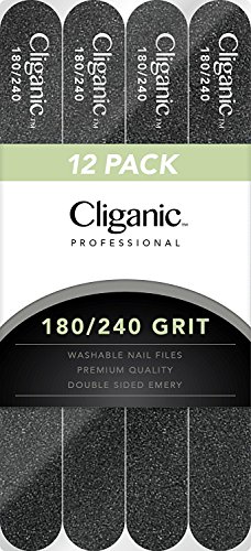 - MULTI-USE, DOUBLE SIDED GRIT 180/240 - Higher grit number means smoother file. Cliganic Nail Files designed with double sided grit for multi-use: MEDIUM GRIT (180) - Gentle shaping of gel/acrylic nails of medium thickness and for shaping the free edge of nails. FINE GRIT (240) – Finishing on gel/acrylic extensions and filing and shaping natural nails.