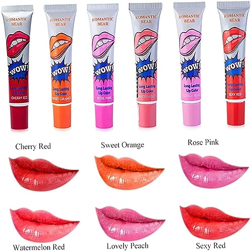 12 pcs Tattoo Magic Color Lip Gloss Sets, 6 Colors Peel Off Lipstick, Lip Stain for Women Peel off Lip Stain Colorful Glossy Lipstick Waterproof