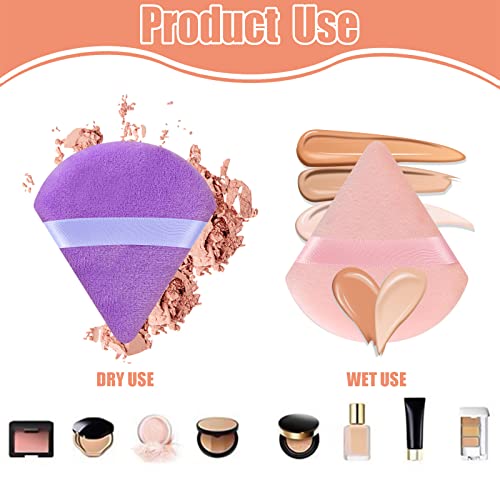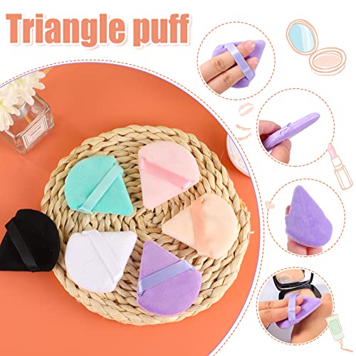 12 Pcs Triangle Powder Puffs, Reusable Face Makeup Puffs, Velvet Soft Powder Makeup Tool with Strap for cosmetics such as loose powder, blush, fo 12 Pcs Triangle Powder Puffs, Reusable Face Makeup Puffs, Velvet Soft Powder Makeup Tool with Strap for cosmetics such as loose powder, blush, fo