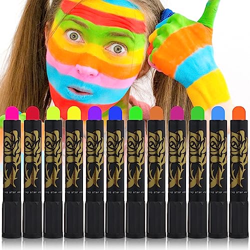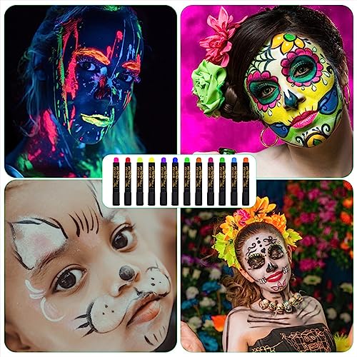 - Package Content: You will receive 12 pieces of neon face paint crayons in 12 colors including golden, rose, purple, fluorescent pink, blue, light green, fluorescent orange, dark green, orange red, red, green and fluorescent orange. Rich and vibrant colors can meet your creative needs in various occasions.