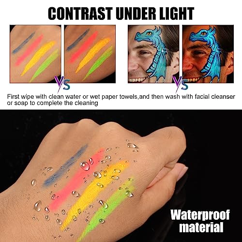 - Use with Confidence: Our face paint crayons are hard to break, won't damage your skin and fall off easily after drying, and can be used by adults and children. You can confidently paint the look you want on your face and body.