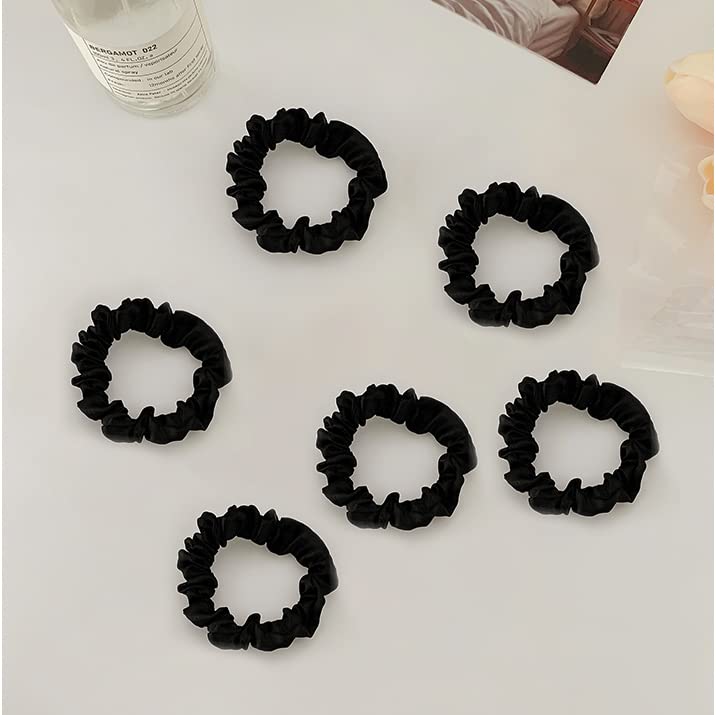 12Pcs Satin Hair Scrunchies, Silk Hair Scrunchies Elastic Hair Bands Hair Ties for Women Girls Black