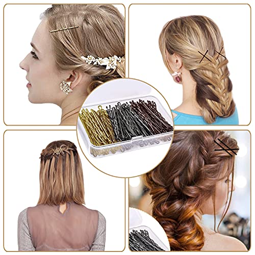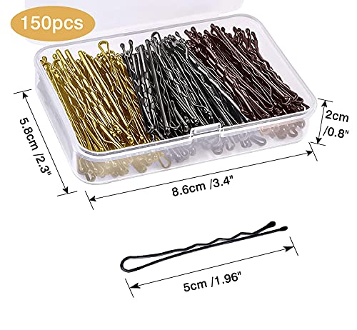 150 Pieces Bobby Pins, Hair Clips Hair Grips Kirby Grips for Women Hair Styling Pins with Storage Box (Black & Blonde & Brown)