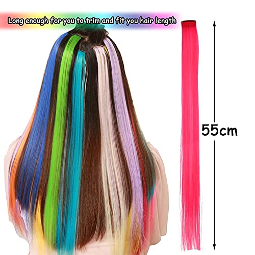 - ❤ 16 Pieces in 8 Colors ❤ Totally 16 wonderful colors hair extension in set clip-in/clip on colored hair extension. 8 pure colors: Red, Pink, Orange, Yellow, Green, Sky Blue, Light Purple, Blue. 1 piece with 1 clip attached and very easy to apply.