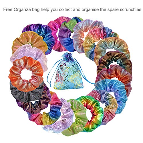 - 【What You Get】Package includes 16 pieces different color shiny scrunchies,Each scrunchy with two-side gradient colors. Free Organza bag for for daily storing to make them in order and good condition for reuse, enough for your need