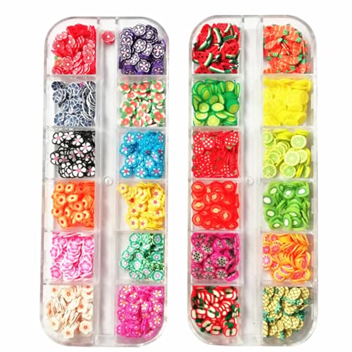 • 2 Boxes Of 3D Fruit Polymer Slices Diy Nail Art Fruit Slices Colorful Crystal Flowers Fruit Clay Nail Slices Nail Sequins Diy Nail Art Marking Tools Diy Crafts Slime Making Nail Art Random Colors