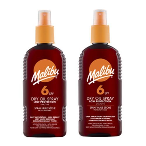 2 Malibu Dry Oil Sprays SPF 6. Pack Contains 2 Bottles - 200ml Each 2 Malibu Dry Oil Sprays SPF 6. Pack Contains 2 Bottles - 200ml Each