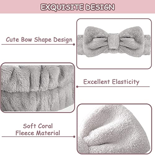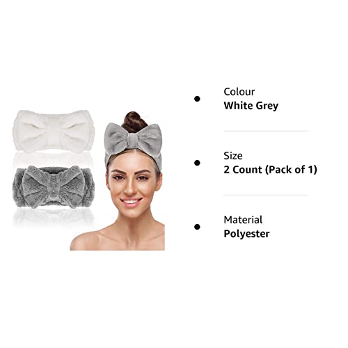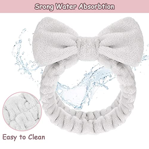 2 Pack Bowknot Spa Headband, Soft Coral Fleece Facial Makeup Hair Wrap Makeup Fluffy Headband for Women Girls Washing Face Skincare, White and Gr 2 Pack Bowknot Spa Headband, Soft Coral Fleece Facial Makeup Hair Wrap Makeup Fluffy Headband for Women Girls Washing Face Skincare, White and Gr