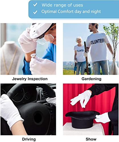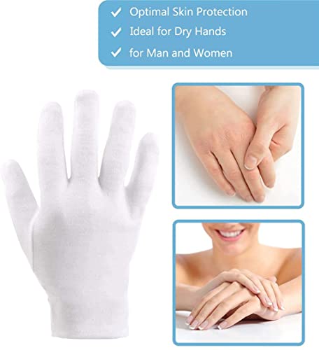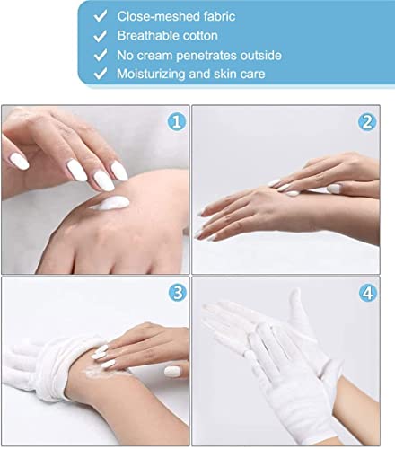 - 【WIDE APPLICATION】 - These white skincare gloves can be worn to moisturize your hands. They can also be used as coin gloves, archive gloves, work gloves, linen gloves, lotion gloves, cloth gloves, inspection gloves, costume gloves, serving gloves, sleeping gloves or glove liners etc.