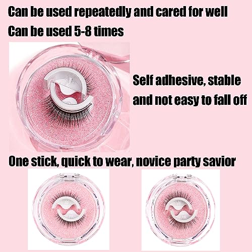 - Easy To Wear:Reusable adhesive eyelashes good for beginners just take our self adhesive lashes off from the case, then put them on your eyes, do not need apply glue or eyeliner,save your makeup time, very convenient