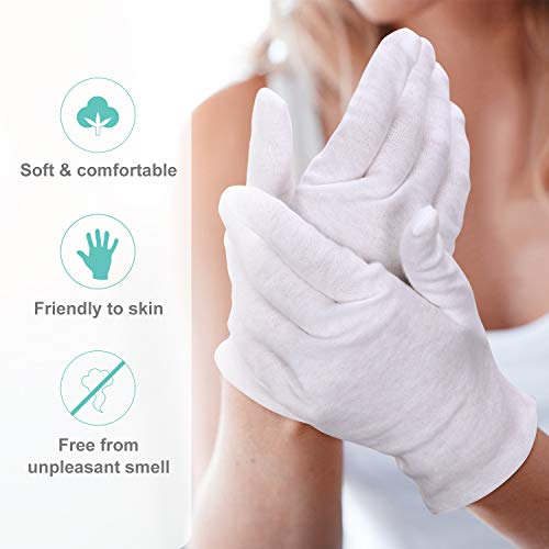 - Wide application: these white skincare gloves can be worn to moisturize your hands or be added to costume accessories, wearing them on, you might also find some of your work more efficient, like archival and art handling, coin and jewelry inspections