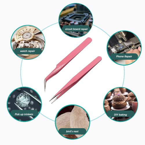 - 【Package Set】Comes with 2 different tweezers for different purposes to meet your needs. The straight tweezers can be used to separate and isolate the desired lashes for application, curved tweezers can be used to separate natural lashes or select individual lashes.
