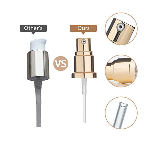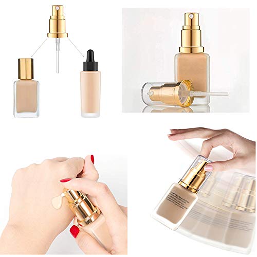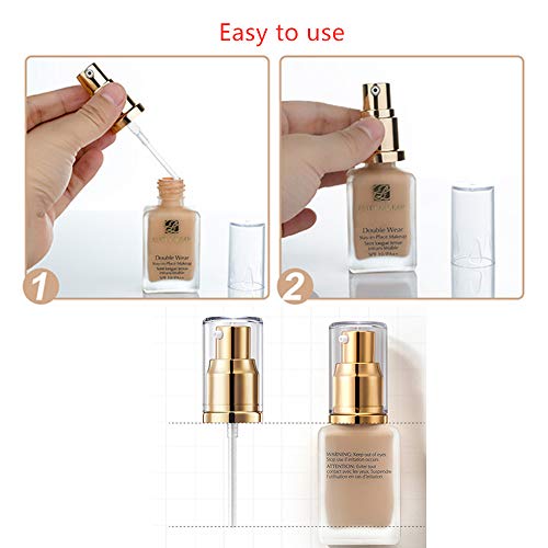 - Design: Bright gold color matches the look of your foundation, makes the foundation looks more luxurious.Make your foundation pump dip in foundation, press lightly, dispense as much as you need and minimize waste, easy and convenient to use and pefect for travel and beauty routinef