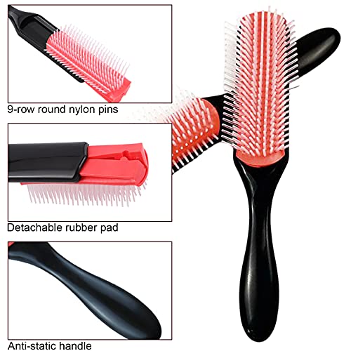- 9-Row Styling Comb: Our hair styling comb use 9-row spread-type and removable rubber pads design, which have a wider contact range and makes your use more convenient. The round-ended nylon pins of the comb can be better separated and shaped hair styling, make your hair full of vitality.