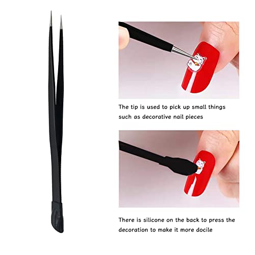 - Extra Silicone Kit: The back of the straight tweezer has a silicone kit to help stickers fits better while use on nail arts.