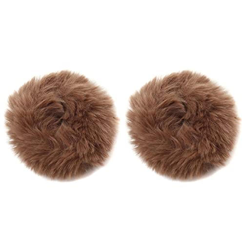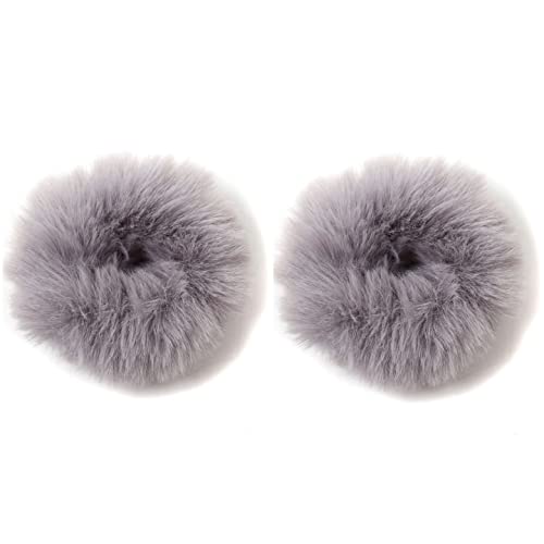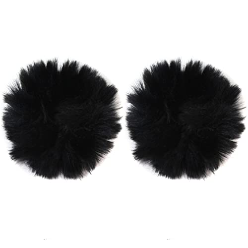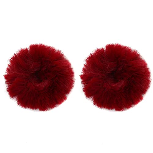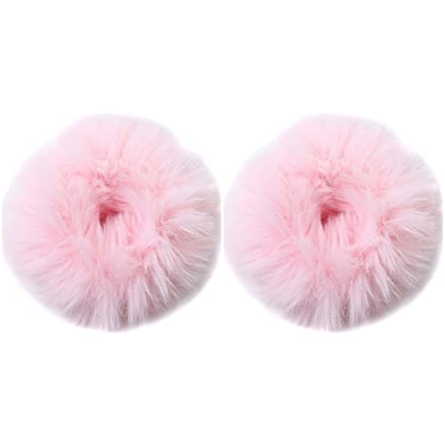 2 PCS PINK Plush Faux Fur Rabbit Hair Ties, Fluffy Scrunchy Hair Scrunchie Bobbles Elastic Hair Bands Holder Ponytail hair band Pompom Scrunchie