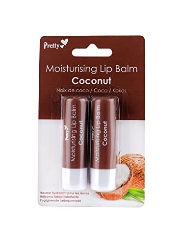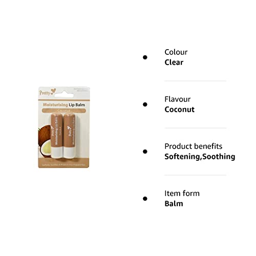 2 x Coconut Moisturising Lip Balm Tubes by Pretty - Softens, Soothes & Protects Dry Chapped Lips - 2 x 4.3g 2 x Coconut Moisturising Lip Balm Tubes by Pretty - Softens, Soothes & Protects Dry Chapped Lips - 2 x 4.3g