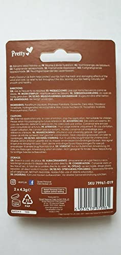 2 x Coconut Moisturising Lip Balm Tubes by Pretty - Softens, Soothes & Protects Dry Chapped Lips - 2 x 4.3g