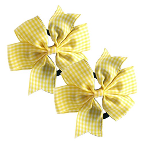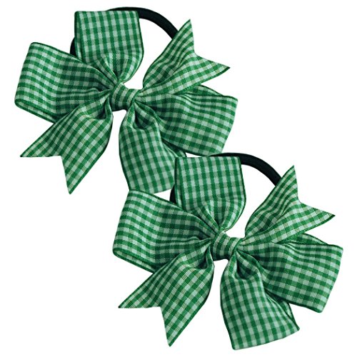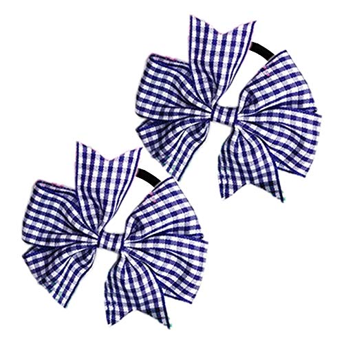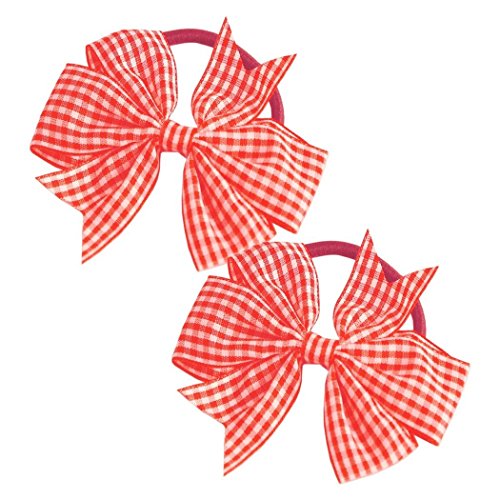 2 x 'Flat Fan' Bow Hair Bobbles | Hair Elastic | School Hair | Gingham Ribbon