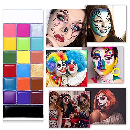- 【20 Colors Halloween Face Paint Set】 - With 20 colors face paint palette, it will meet different makeup needs, you can give full play to your creativity. Perfect for all aspects of face and body painting, richer color-saturated coverage than ordinary makeup.