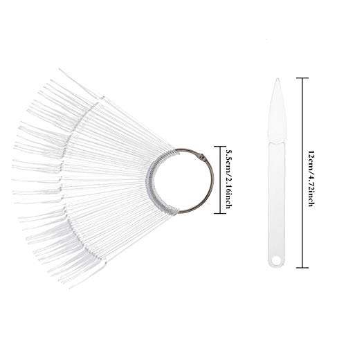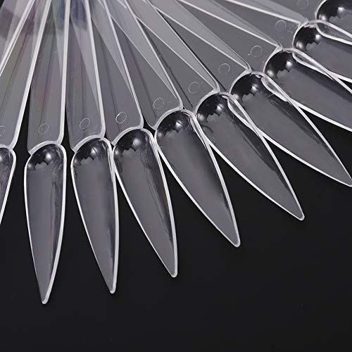200pcs Clear Stiletto Nail Swatches Sticks Fan-shaped Nail, Gel Nail Polish Display Board Detachable Practice Sticks Wheel with Ring Holder