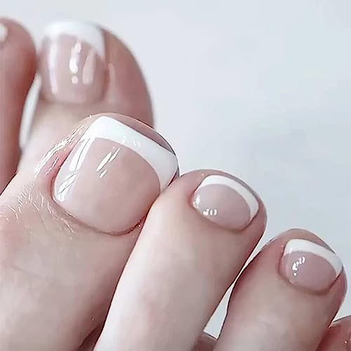 24 Pcs False Toenails with Glue - 12 Sizes Matte Short Fake Toe Nails Tip - Full Cover French Toe Nail - Square Artificial Fake Nude Art Toe Nail