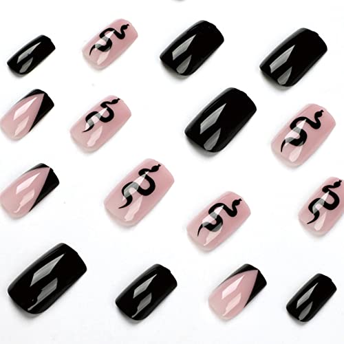 24pcs French Tip False Nails Short Stick on Nails Square Press on Nails Daisy Flower Removable Glue-on Nails Purple Fake Nails Acrylic Full Cover