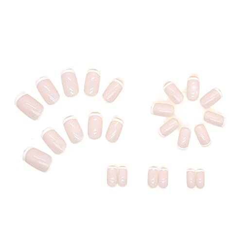 Home Nail Care 24pcs French Tip False Nails White Stick on Nails Short Square Press on Nails Removable Glue-on Nails Fake Nails Women Girls Nail Art Accessories