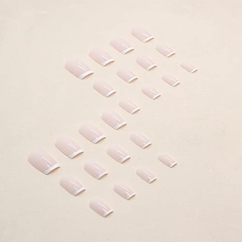 24pcs French Tip False Nails White Stick on Nails Short Square Press on Nails Removable Glue-on Nails Fake Nails Women Girls Nail Art Accessories