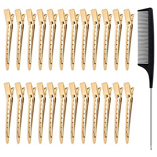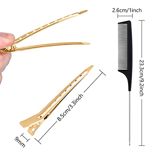 24pcs Hair Sectioning Clips with Styling Comb, 3.5 Inches Duckbill Hair Clips Metal Crocodile Hairdressing Curl Clips