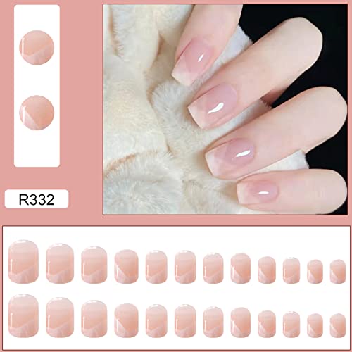 24pcs Square False Nails Short Stick on Nails Nude Pink Press on Nails French False Nails Removable Glue-on Nails Fake Nails Acrylic Full Cover N
