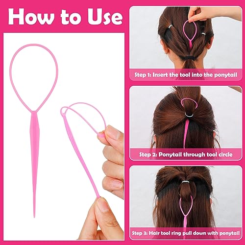 - 【Easy to Use】When using the inverted ponytail tool, just insert the ponytail into the loop, then run it upside down through the hair to complete the shape. (Reminder: These mini rubber hair ties are disposable, it is recommended to use multiple rubber bands for thick hair)