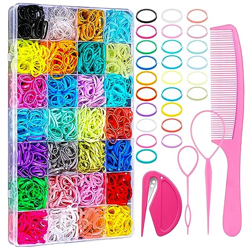 - 【28 Colors】You will receive 1500pcs small elastic hair bands, 2 tail hair tools, 1 hair comb and 1 elastic hair bands remover cutter. Packaged in a clear reusable organizer box. Each color is individually packaged for your daily usex