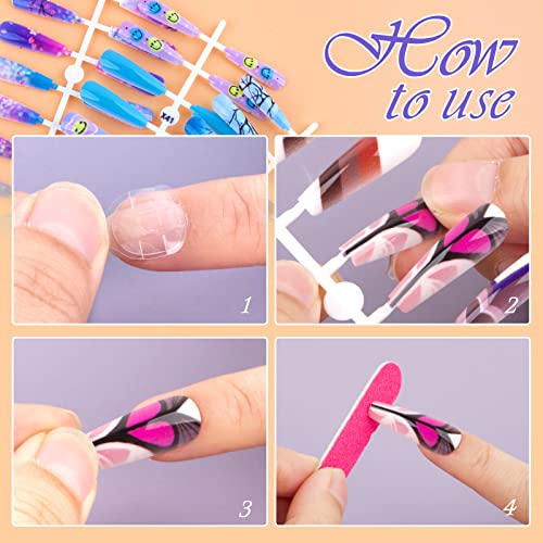 - 【Package Include】You will receive 288 pcs colorful long false nails in various colorful patterns