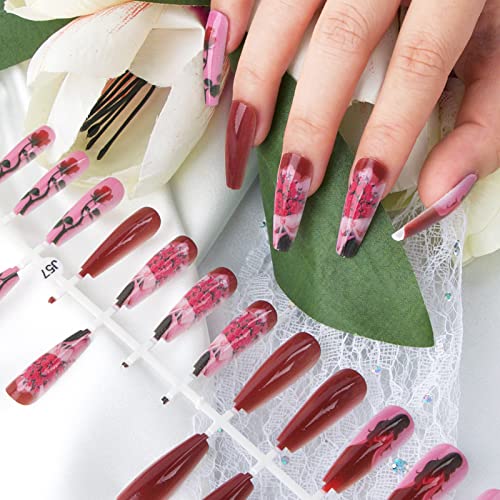 - 【Sturdy Material】These long false nails are made of high quality ABS,which looks natural.They are durable and not easy to break