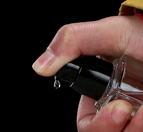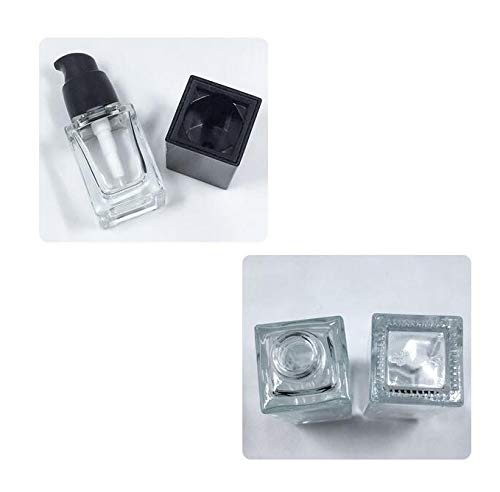 - Material: Glass, Plastic Pump Head. Color: Clear+Black. Capacity: 15ml/0.5oz, 20ml/0.7oz and 30ml/1oz. Package: 2Pcs glass pump bottle.