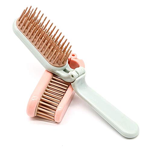 2Pcs Folding Hair Brush Hair Comb Portable Mini Massage Hair Brush Anti-Static Anti-knot for Women & Girls Size for Handbag