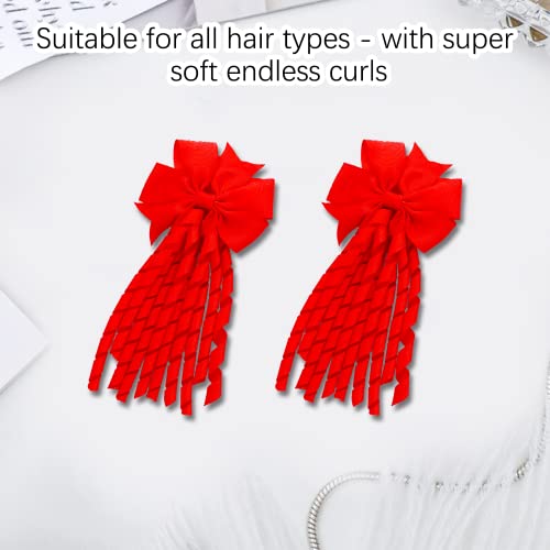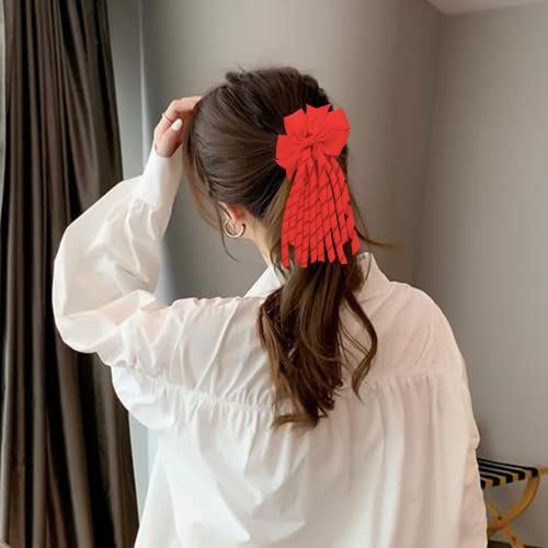 2PCS Rubber Band Red Hair Accessories for Girls Hair Bow Streamers with Tassel 3.5inch Red Hair Bow for Curly Hair, Straight Hair, Ponytail