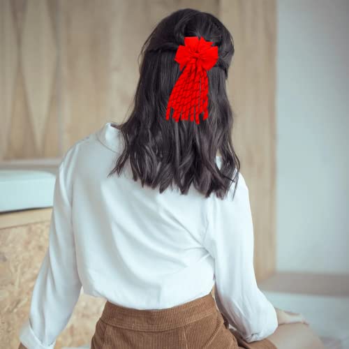 2PCS Rubber Band Red Hair Accessories for Girls Hair Bow Streamers with Tassel 3.5inch Red Hair Bow for Curly Hair, Straight Hair, Ponytail 2PCS Rubber Band Red Hair Accessories for Girls Hair Bow Streamers with Tassel 3.5inch Red Hair Bow for Curly Hair, Straight Hair, Ponytail