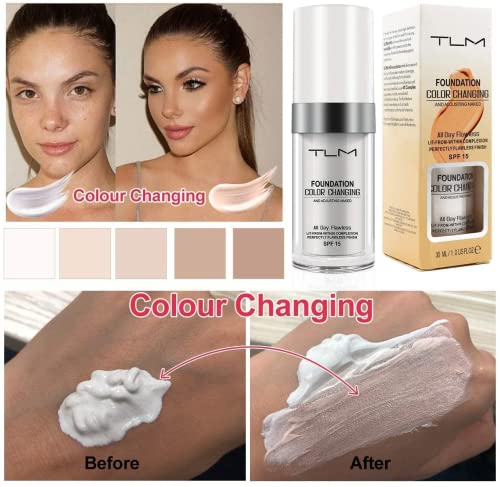 - (ALL-DAY FLAWLESS MAKEUP) With this special color-changing foundation cream, it instantly adjusts to your skin tone so you can easily get an all-day flawless look. When it first is applied, it comes out white, but then changes color to give you an exact skin match. You can just use this and it will instantly adjust to your skin tone.