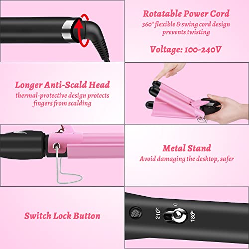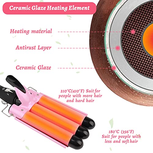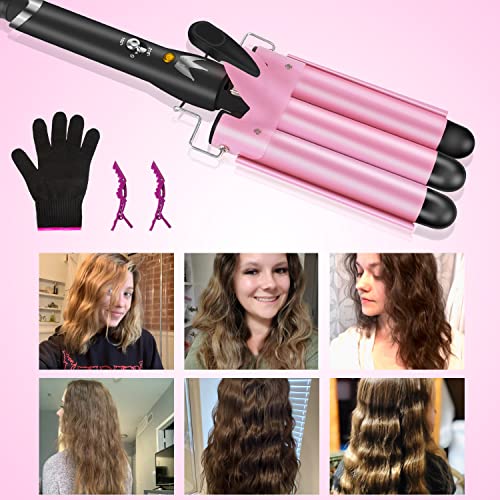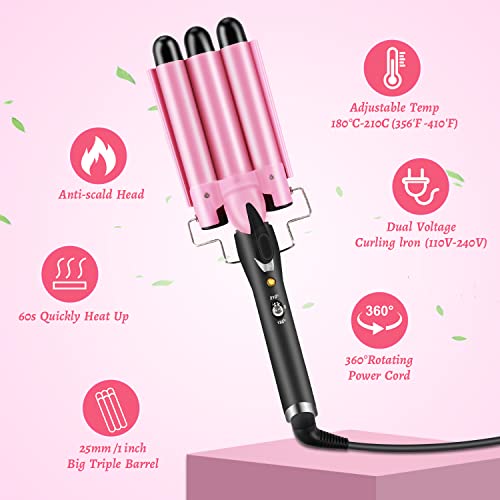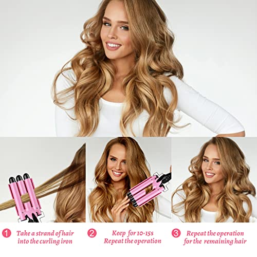 3 Barrels Hair Curler - 25mm Curling Iron Tongs Hair Waver Mermaid Waves Wand Beach with 2 Temperature Control Quick Heating for Long or Short St