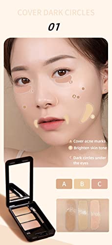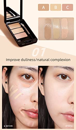 3 Color Concealer,Cover Acne Marks Concealer,Women Face and Eyes Professional Makeup Colour Correcting Palette Evens Skin Tone (01)