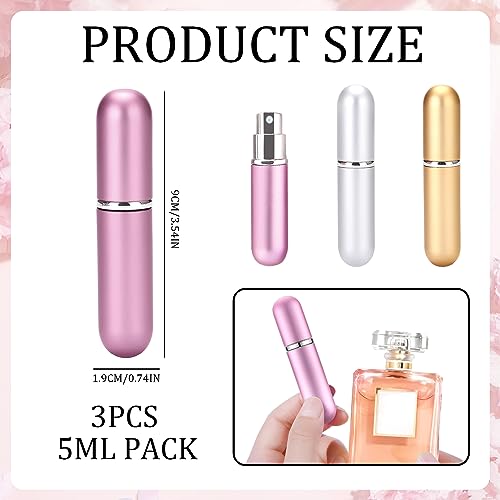 - 【Convenient Travel Essentials】Our pack includes 3 x 5ml Refillable Perfume Atomisers in classic black, vibrant pink, and sleek silver. Designed compact and lightweight, these mini travel bottles fit effortlessly into your bag or pocket.